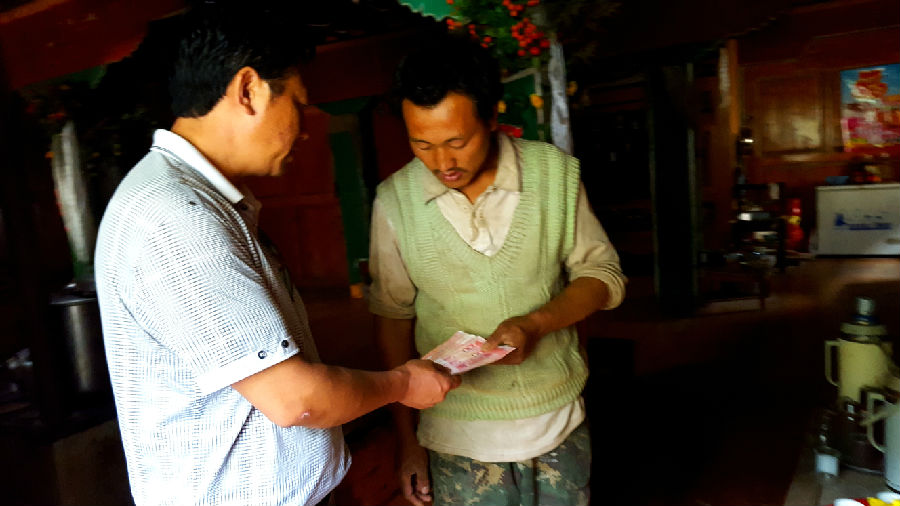 2017年8月3日在和建聪调研员的带队下州人社局工作人员一行五人对局扶贫挂钩村新联村22户扶贫户进行了精准扶贫数据核查走访和产业扶持资金发放,共发放扶持款66000元。