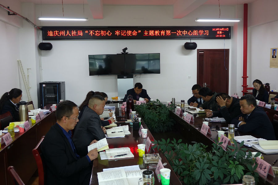 根据迪庆州人社局“不忘初心、牢记使命”主题教育领导小组办公室关于开展班子主题教育集中学习活动的计划安排,2019年9月30日上午9时,迪庆州人社局党组召集全局副科级以上干部职工(含非领导职务)组织召开党组中心组学习会议。会议由州人社局党组书记、局长和建国同志主持,结合“不忘初心、牢记使命”主题教育工作要求,就开展好党组中心组集中学习提出了具体的要求。会上,局党组书记和建国,党组成员汪林、和绍光、此...