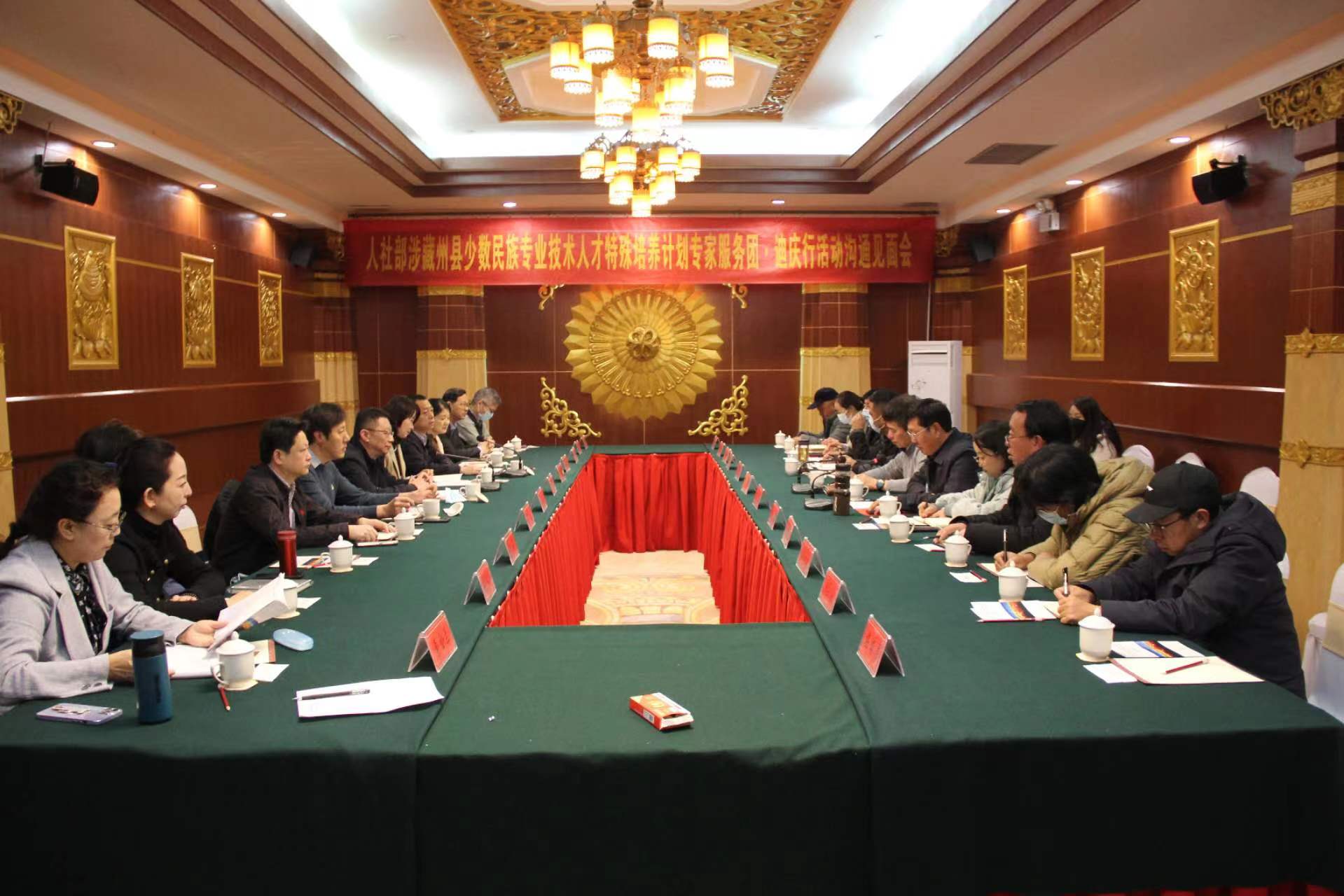 为让全州各族群众就近享受国内优质的医疗资源,实现群众便捷就医、安全就医、有效就医,国家人社部“涉藏州县少数民族专业技术人才特殊培养计划医疗专家服务 迪庆行”活动在我州顺利举行。此次活动由人力资源社会保障部留学人员和专家服务中心、云南省人力资源和社会保障厅共同主办,云南人才市场、迪庆州人力资源和社会保障局承办。为确保活动顺利开展,3月27日上午,专家服务团与我州相关服务单位召开沟通见面交流会,国家人社部留学人员和专家服务中心培训交流处处长潘磊、州人民政府副州长周剑斌出席会议,见面会上国家人社部、省人社厅、州人民政府各级领导对全州各级各部门服务保障好专家服务团安心开展工作提出了明确要求,中国藏学研究中心北京藏医院党委委员、副院长高玮代表专家服务团就做好此次服务工作做表态发言。