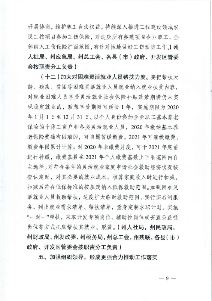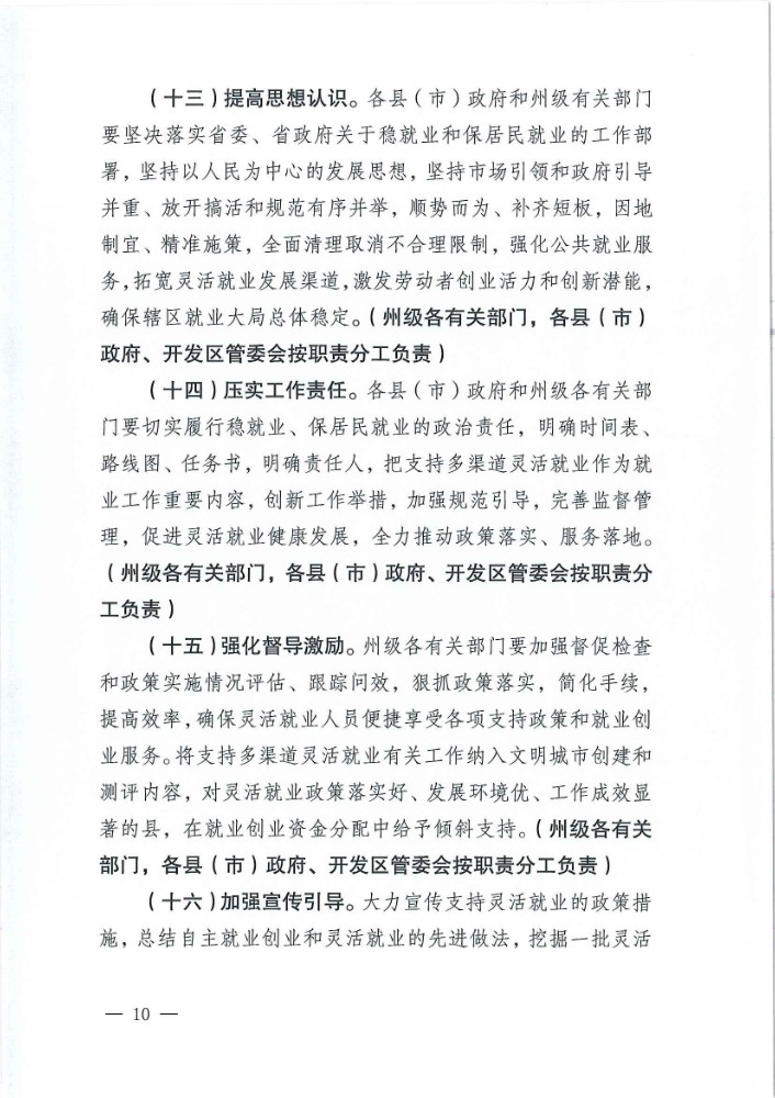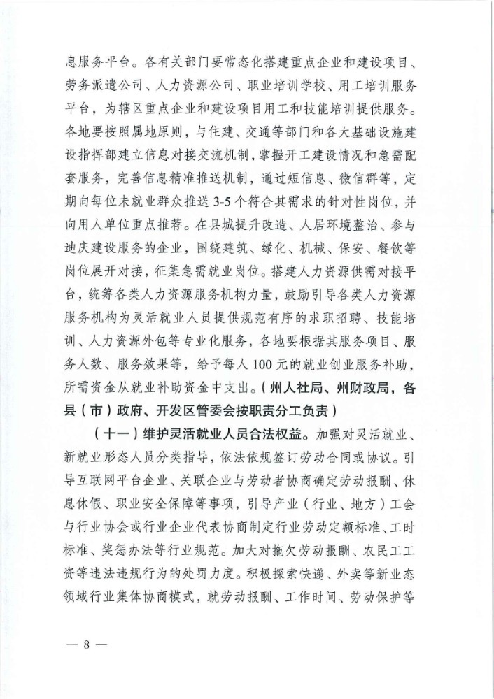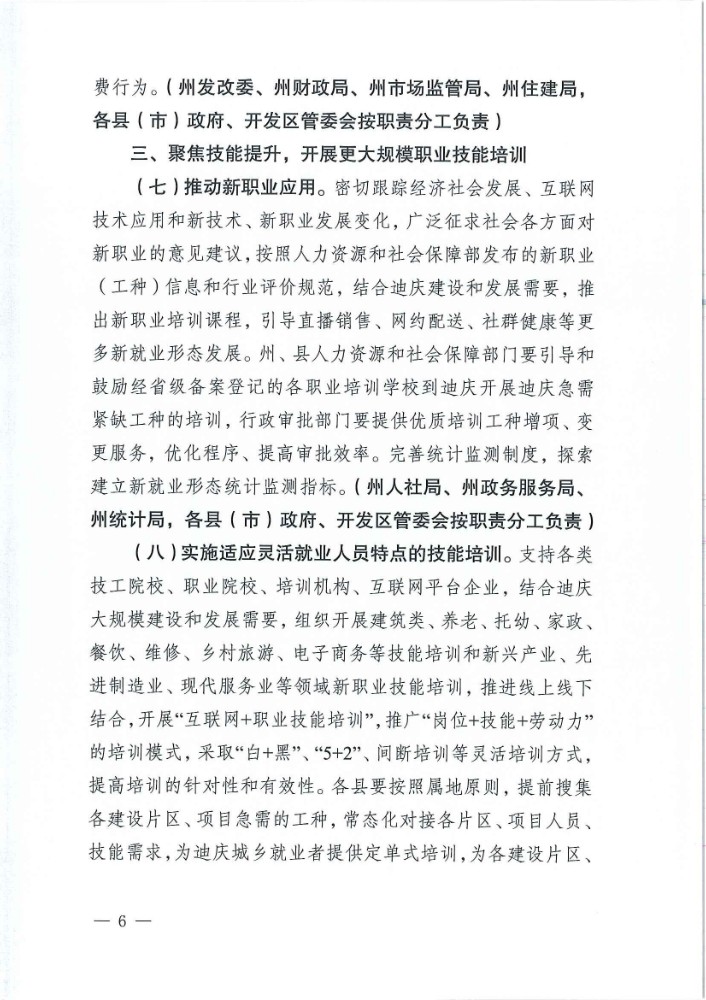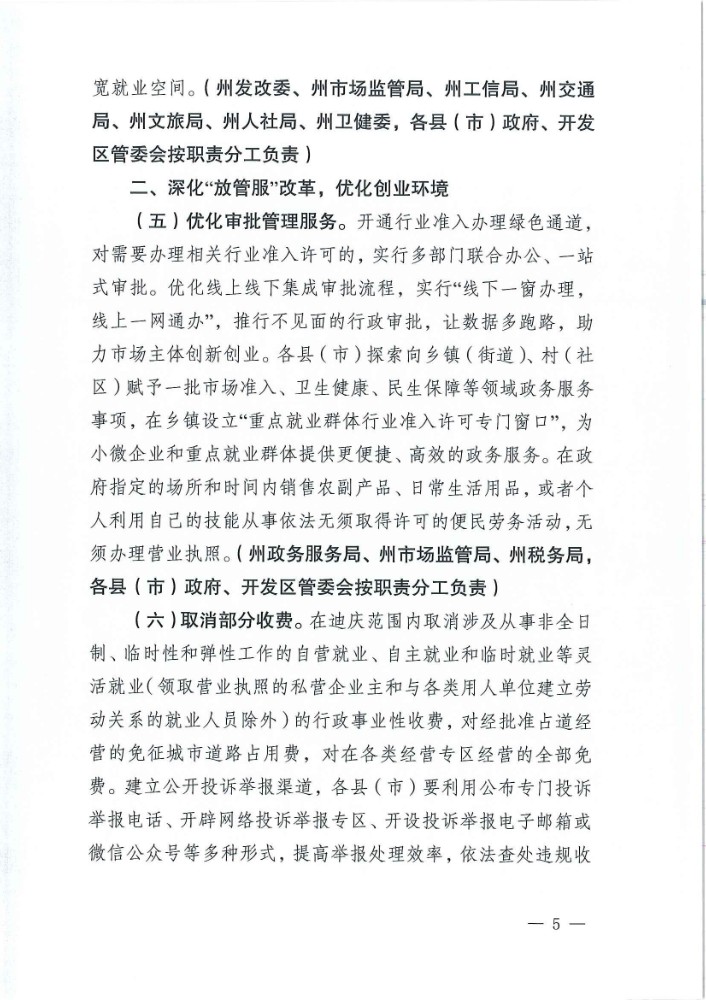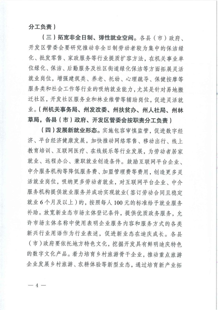 迪庆藏族自治州人民政府办公室关于印发支持多渠道灵活就业措施的通知